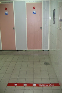 It didn't end there. Even this bathroom, as well as quite a few others visited on the trip, had a designated queuing spot: