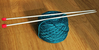 I headed over to Stash Yarns, and with a good bit of help from the staff and other customers, I picked out this turquoise yarn to go with these expertly suggested knitting needles.