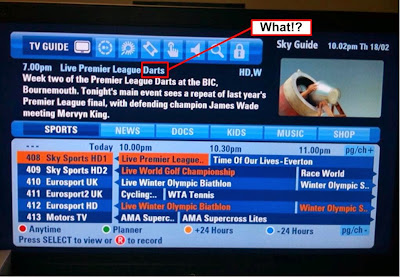- That a repeat of Premier League Darts is shown in HD on Sky Sports while there's plenty of Vancouver Olympics to be shown. Surely, somewhere in Vancouver, there's Luge in progress?