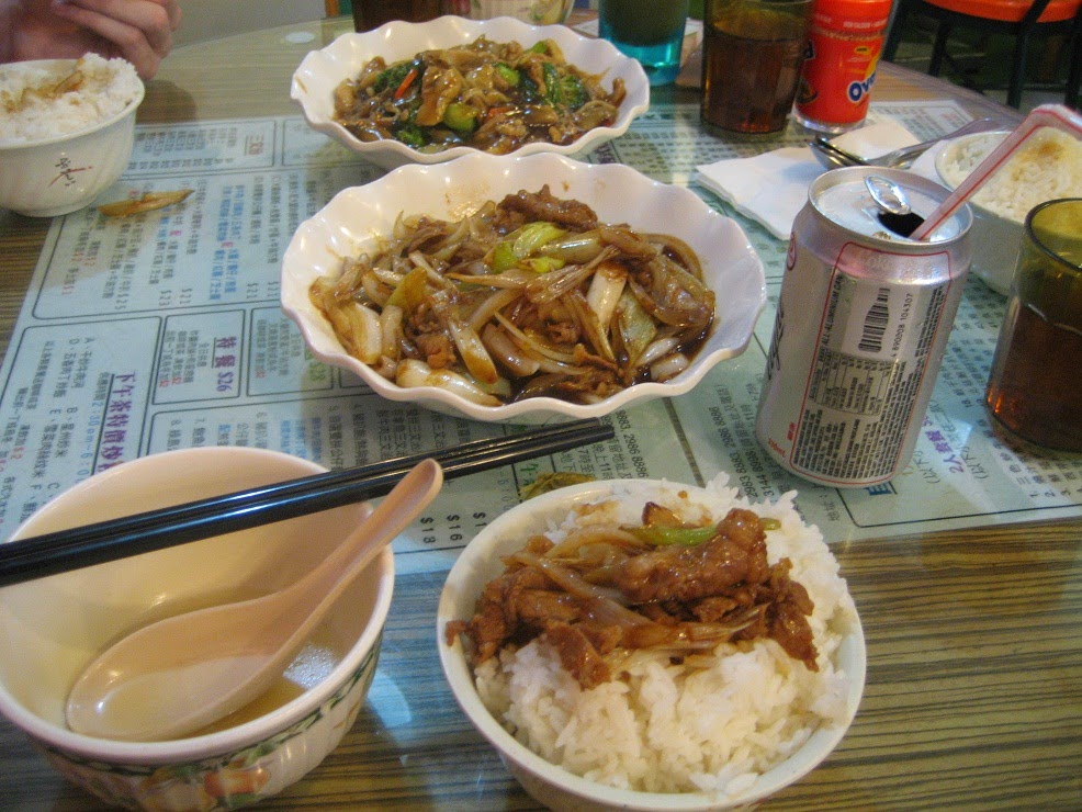 Lunch time arrived, and we decided to go to one of the next three places we saw. We actually went into the first, Green Island Restaurant. I gather this was the Cantonese equivalent of a diner, and had we not had Yuki with us, we definitely would not have eaten as well as we did. The English menu offered about ten dishes, each of which was priced more highly than anything on the Cantonese menu. Yuki selected three dishes for us, and we were stuffed by the end.