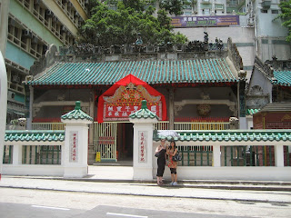 En route to antiques, we checked out the Man Mo Temple, the interior of which is a sight. Visitors are under a canopy of incense spirals that are cone shaped, each of which is labelled with a wish. You can view pictures here, but I didn't take any at the request many posted signs.