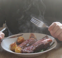 - The meat was a bit gristly on the edges, but removing those bits, it was excellent. (Darren)